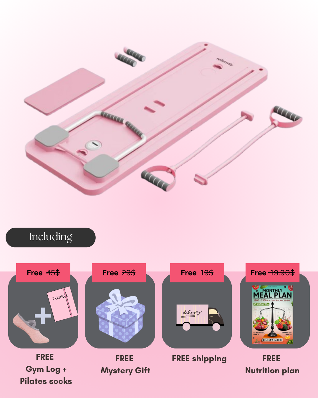 We've got you covered, you will get the pilates board along side gym log, pilates socks, and an extra mysterious gift , shuuut !